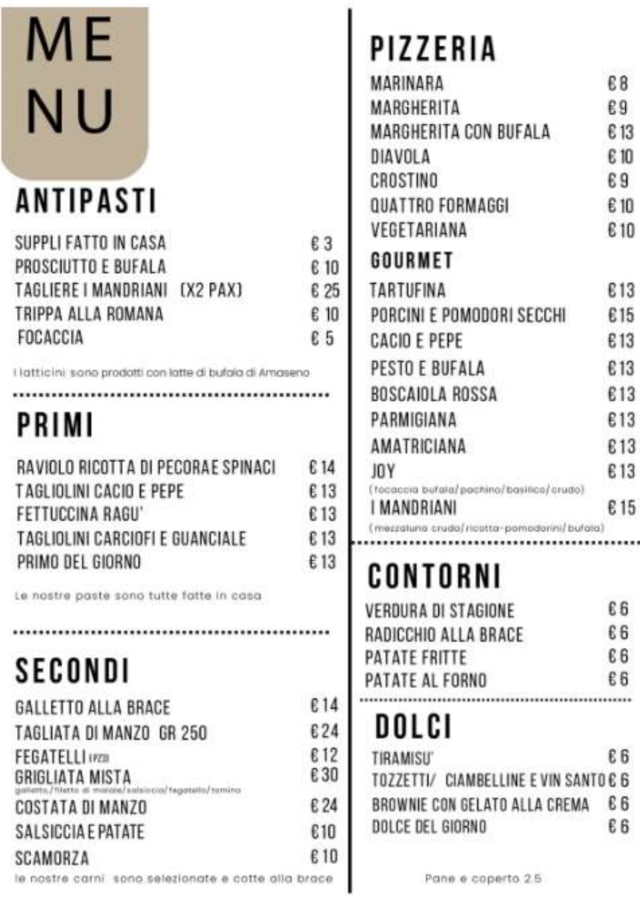 10/10We went to the Mandriani restaurant for lunch: good and tasty food; kind staff and excellent service. I recommend this restaurant