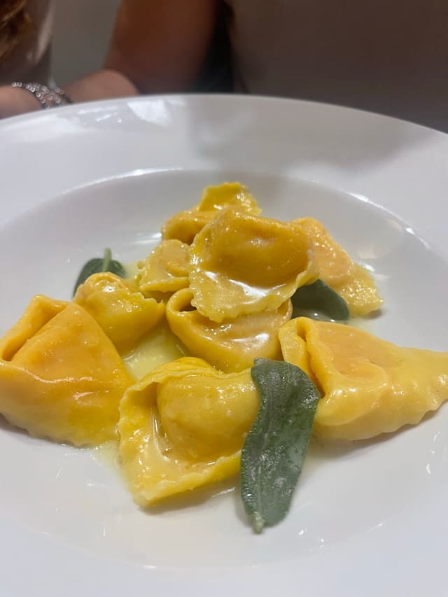 8/10I had an early reservation because I had an appointment to go to. I only had a prima piatti of tortelloni with spinach and ricotta. It was very good. Also a glass of a local red wine. I didn’t have a chance to explore anything else on the menu, but the owner was pleasant and spoke English which was a big plus. Overall a good experience, The decor was simple, yet elegant.