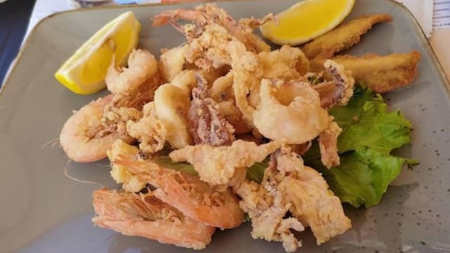 - Triglie, salmone, cozze, gallinella, vongole, scampo, nasello, aglio, prezzemolo, olio extravergine e pomodoro