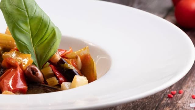 La nostra specialità: melanzane, peperoni, basilico, pinoli, olive taggiasche e salsa agrodolce