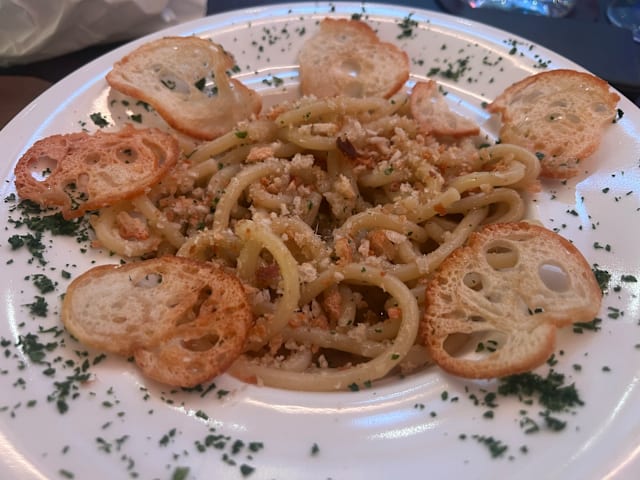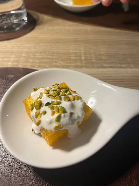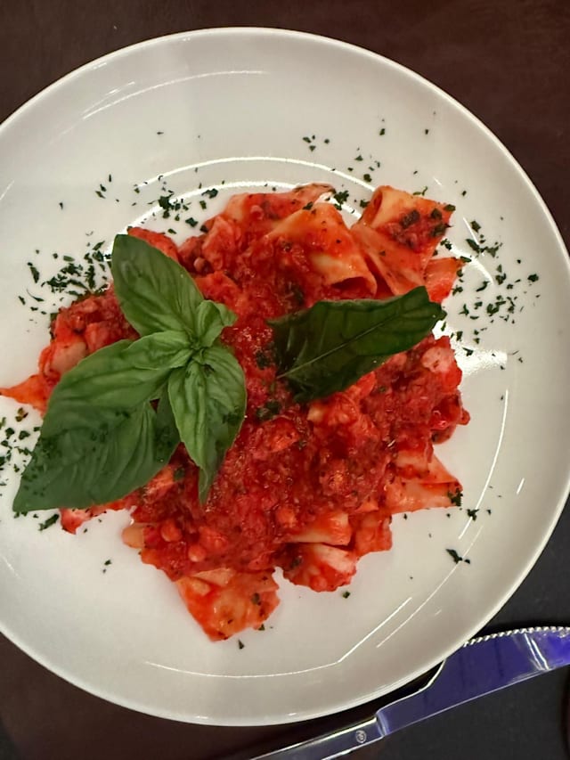 10/10We live around the corner and I can’t believe this was our 1st time at this hidden gem of a restaurant. The stunning open air design of the inner courtyard with tables and seating was a complete surprise. Perfect spot for an aperitivo in warmer weather. As we’d arrived right before the restaurant opened, we had cocktails at the sleekly designed bar, separate from the dining area. When we sat down to eat, we were greeted with a welcome glass of prosecco followed by a tasting of pappa al pomodoro. Another nice surprise. For dinnner, we started with 3 antipasti - fried artichokes, zucchini flan, fried polenta topped with cinghiale ragù, each mouthwatering perfection. We then shared the pici pasta with garlic, peperoncino, breadcrumbs that left me wishing I had ordered a full serving and had stopped there. For secondi, we had traditional Tuscan peposo and baccala alla Fiorentina, both perfectly prepared. The service was one the best I’ve ever experienced- professional and welcoming.