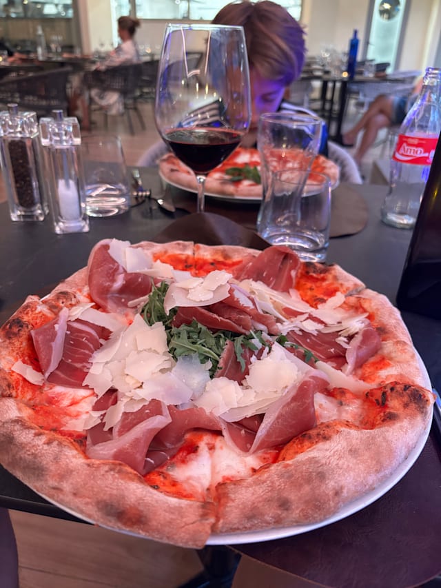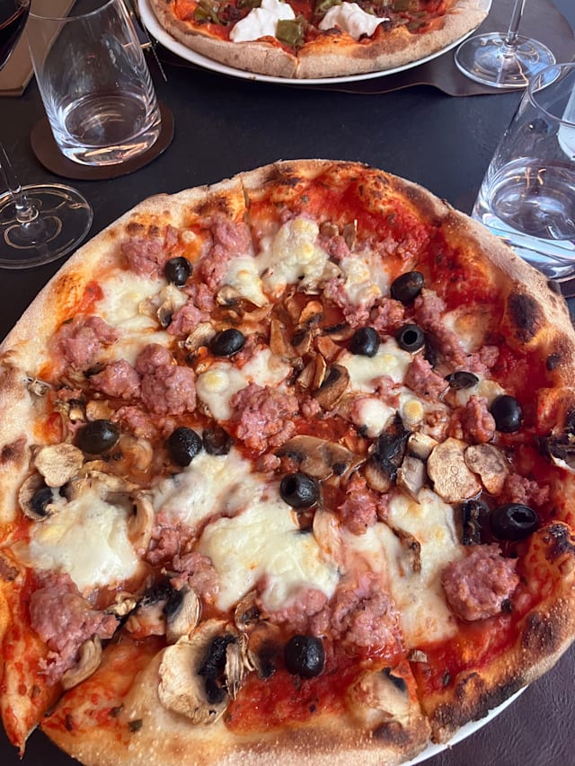 10/10Welcomed and seated promptly. Offered a glass of sparkling wine as apéritif and fried polenta with dressing. Very tasty. Starter courgette flan, very good, followed by Vegetariana and Salumi pizza. Cooked to perfection, tasted great. Highly recommend.