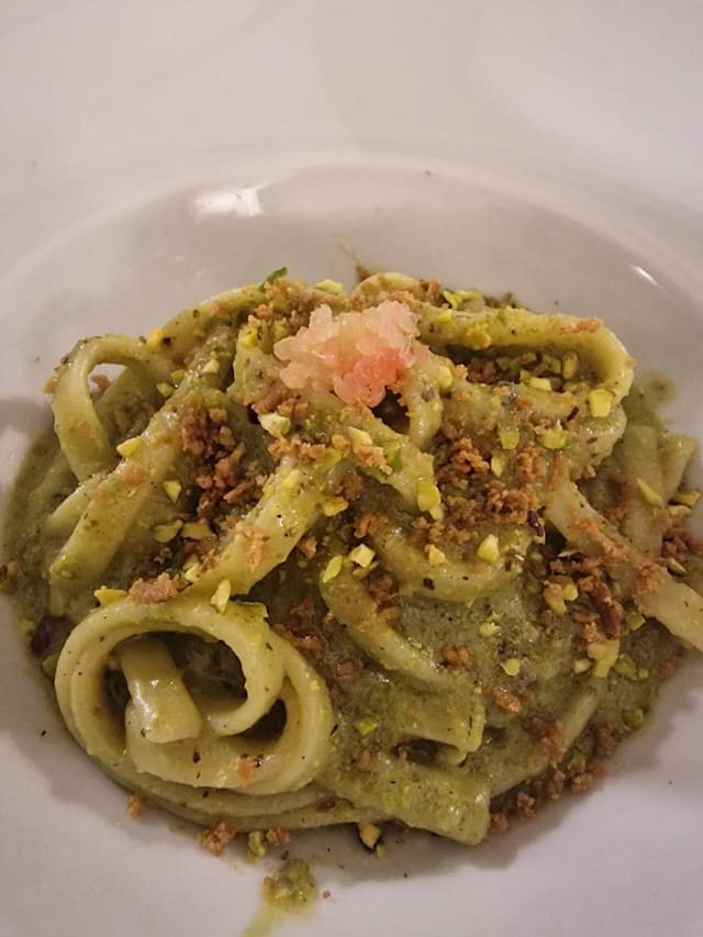 Bucatini con sarde, mandorle, mollica tostata uva sultanina e pinoli