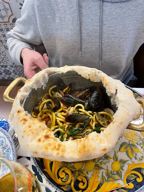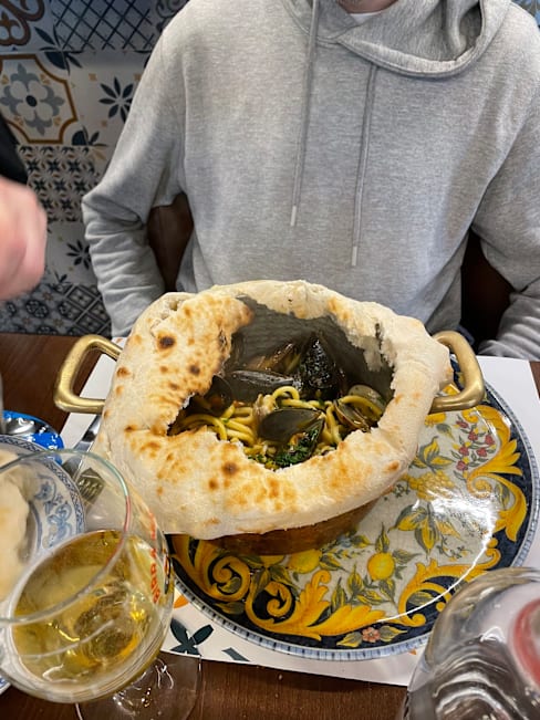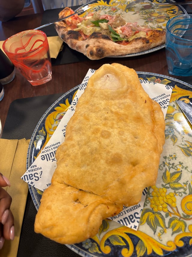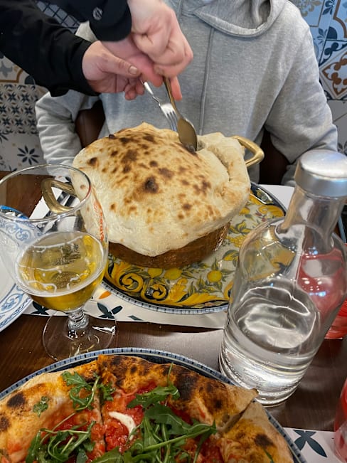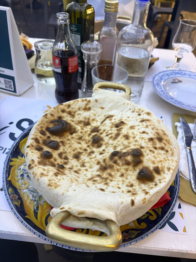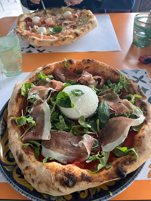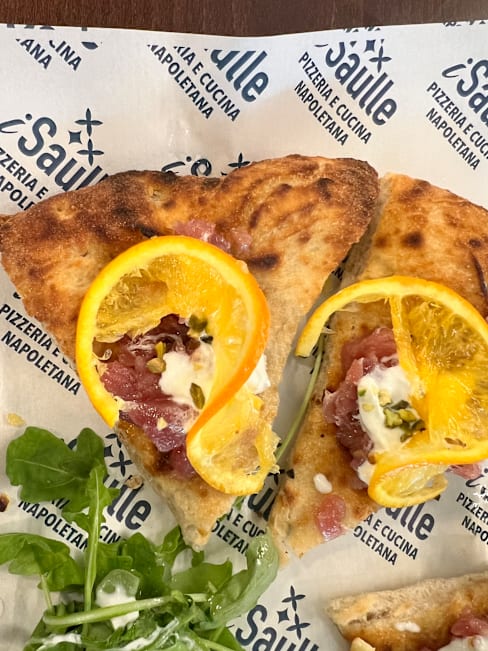 9/10Food was amazing. We had a unique 🍕 named ‘Pinna gialla’. It was a fried pizza, cooked afterwards in the pizza oven and topped with stracciatella, tuna tartare, pistachios and orange slides. Simply delicious.