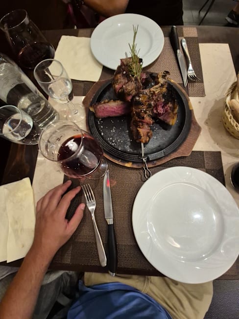 10/10The food was amazing and the service was impeccable. My wife and I shared the 1.2kg Florentine steak. It was probably the best steak that I have ever eaten. We ate our fill and will be heating it up a little in the hotel microwave for breakfast. Im sure the Italians would consider that to be sacrilegious but we couldn't stand the idea of someone throwing it out!