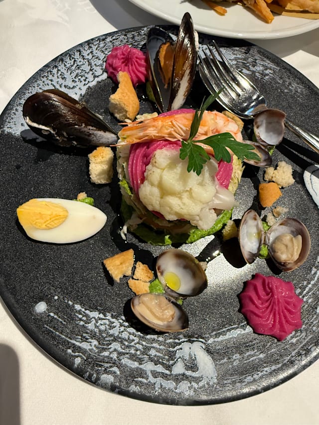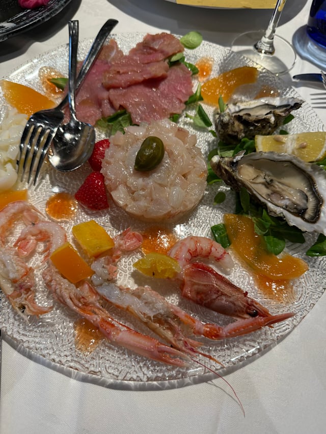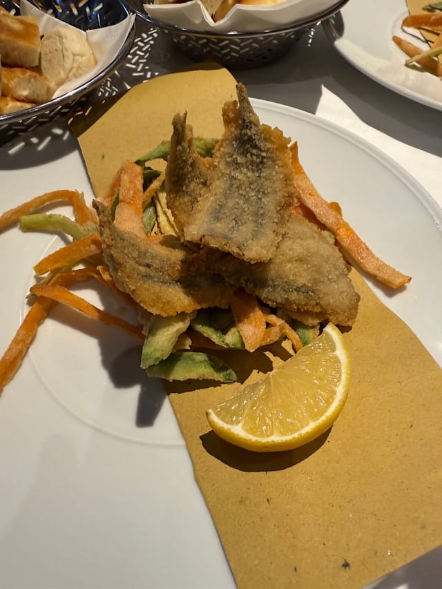 6.5/10Out for business dinner. Three people. We had farinata for starter and it arrived at the table already cold. This is unacceptable, in a restaurant of this price range. I had pizzata and it was quite good. My girlfriend had tris di torte salate and it was good. Our guest had the grilled fish platter (26€, probably the most expensive item on the menu…,). He proposed me to have a taste: I was embarrassed! It had been me who invited, chose the restaurant and proposed the dish…. It felt like it had been forgotten on the grill and tasted like wood, the smallest the worse! Falanghina from Mastroberardino was excellent. I had been there before and I was expecting to pay more, but for what we had it felt a big disappointment.