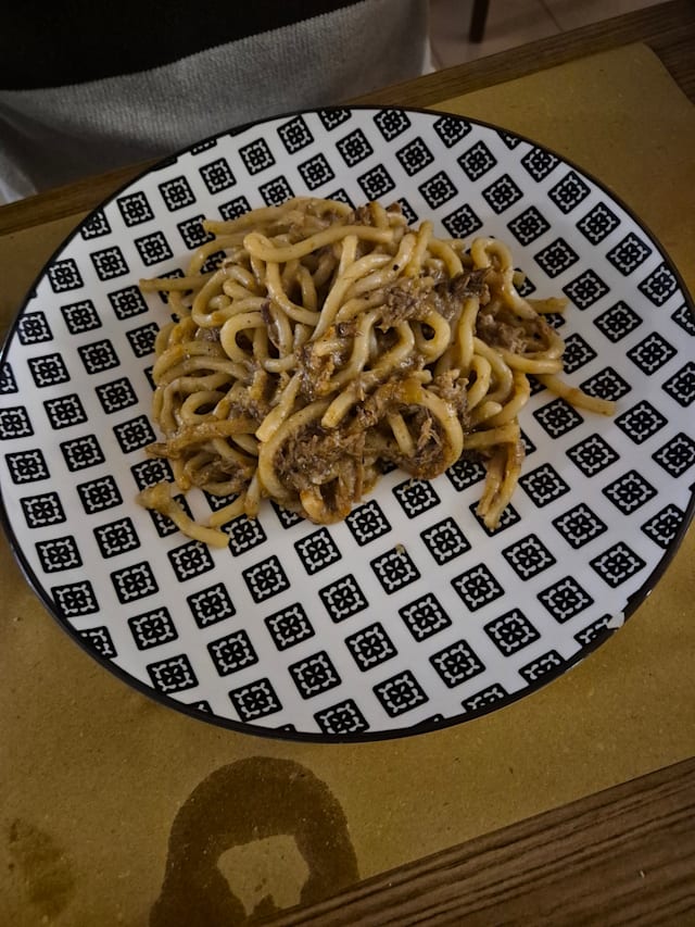 Pappardella all'uovo fatta in casa con ragù di cinghiale della tradizione toscana