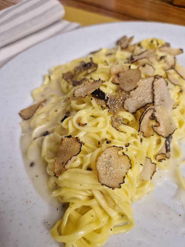 Very interesting food, super service! Just 1 minute from the exit of the autostrada, with easy safe parking. Fabulous specials like Polentina with taleggio e tartufo. Wines at fair prices.