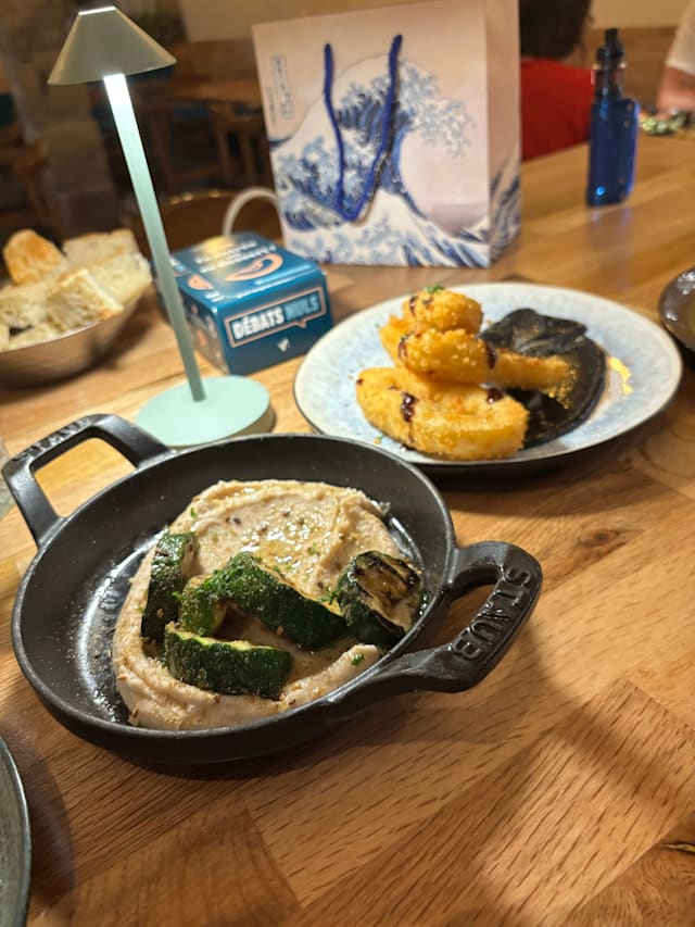 6.5/10The portions were so small and tasteless ! My friend and I had the squid. For some reason they served us more of it afterwards, with an accompaniment we didn’t have before… gave more flavour…what was all that about ?!? And we had to ask 3 times to get a tap water pichet… I don’t think I will go back or recommend. The staff were ok but the guy (boss???) was more interested in his phone than his customers