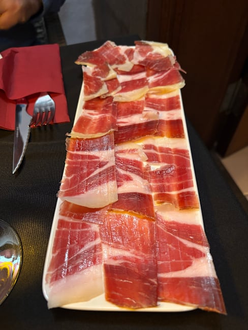 Dear Eila, Thank you for your visit and for taking the time to share your feedback. We regret that we did not fully meet your expectations on this occasion. Regarding the 100% Iberian Bellota ham, we would like to clarify that it is always professionally and correctly sliced. The presence of fat is a key characteristic of this ham, as its unique marbling—known as intramuscular fat—is what gives it its exceptional texture, depth of flavor, and melt-in-the-mouth sensation. Unlike regular ham, this natural fat is rich in oleic acid, the same healthy fat found in olive oil, which contributes to its smooth, almost buttery consistency. This marbling is a sign of high quality and a direct result of the free-range lifestyle and acorn-based diet of Iberian pigs. We truly appreciate all feedback and always strive to offer the best possible experience to our guests. We hope you will give us another opportunity to enjoy our carefully curated gastronomic offer, as well as the welcoming atmosphere and attentive service that have been highly valued by so many of our visitors. Best regards, Ibéricos Gastro-Bar