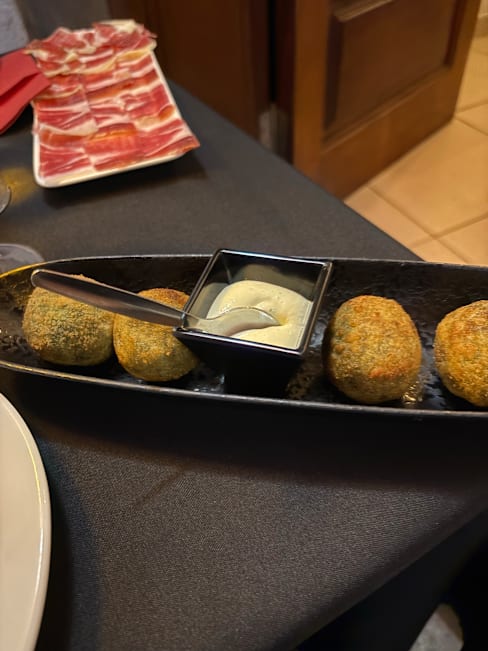 6/10Many people had recommended this restaurant to me. Maybe the expectations were too high, but the meal was a disappointment. Bellota ham was badly cut and there was more fat than meat on the plate. Some of the other tapas were also tough. Gambas alajillo and crocetas were decent.
