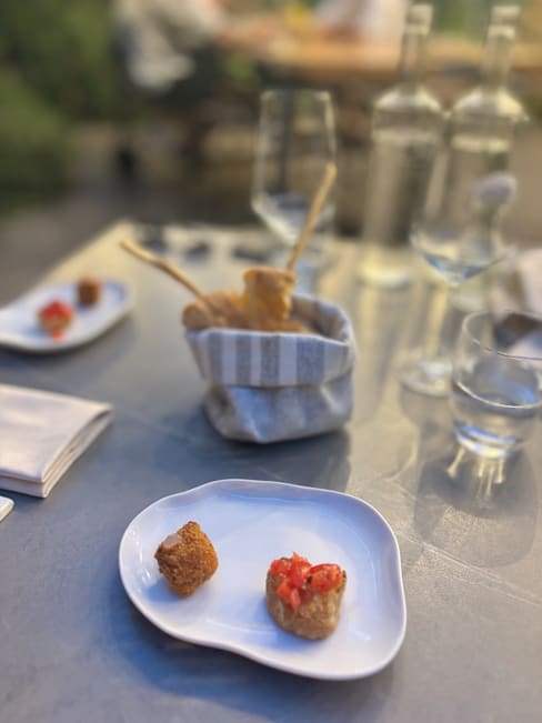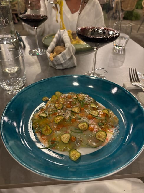 10/10We went early (6pm) because we had a long day of hiking around Pompeii in the heat. It was only about a 5-7 minute walk away from Piazza Tasso. We passed a beautiful gorge on the way. The food was outstanding. Dinner started with two delicious amuse- bouche and a delicious recommended local white wine. We had appetizers of one of the focaccia that was also delicious. My daughter and I had a fish entree and my husband went for the steak. We were all very happy. The waiters were very attentive (we had the place to ourselves until maybe the last 15 minutes). The aesthetic of this restaurant is very charming in a romantic somewhat boho garden setting. This place is highly recommended on this app and it is well deserved. We loved it and would love to come back at a more normal Italian dinner time. 💕