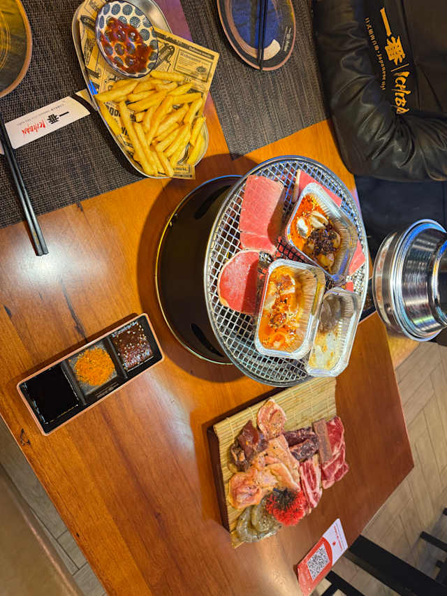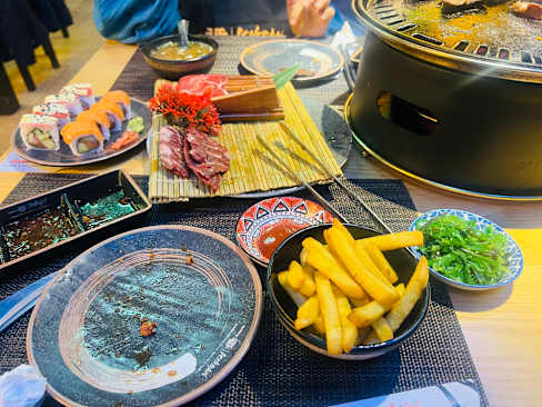 9.5/10Overall the restaurant was great—lots of food, good quality, and the price is fair. The staff was super nice and honestly gorgeous. The only thing I didn’t like (and my friends didn’t either) is that when you order meat, they bring it raw and you have to cook it yourself. They start you off with a tiny coal fire, and only when they see you’re taking forever do they switch to a real one 😂 Besides that, everything else was really good.