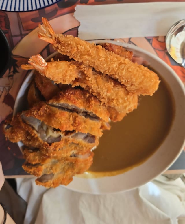Arroz del día, katsu kare don +1.50€, tori katsu don +1.50€, ebi katsu don +2.50€