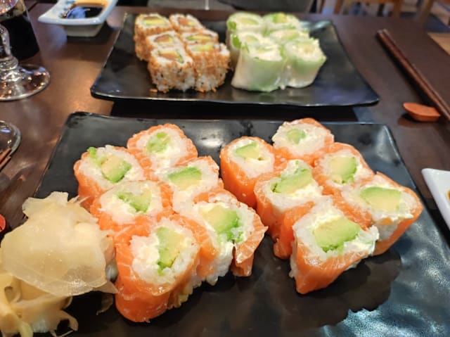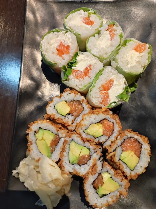 sushi thon/saumon/daurade touche de caviar (tobiko orange/fromage/lompe)