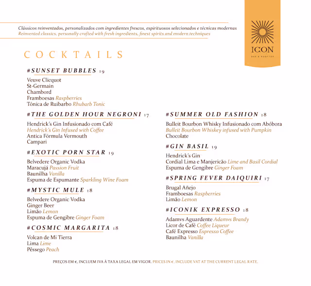 ICON Bar & Rooftop is identified as offering portuguese cuisine.