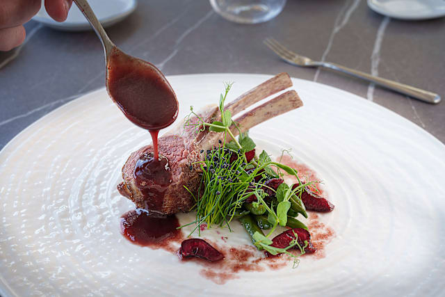 - Lombetto di agnello CBT insalatina di fagiolini, demi- glace alle ciliegie e ciliegie fermentate