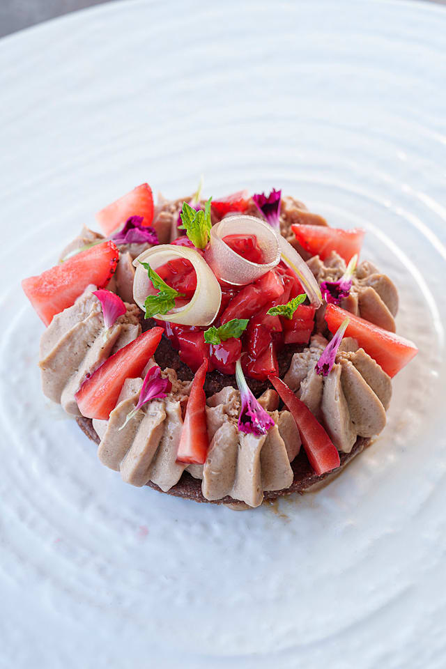 - Triglia ai profumi eoliani glassata alla malvasia, polvere di capperi di pantelleria, coulis di datterino, cipolla acidulata
