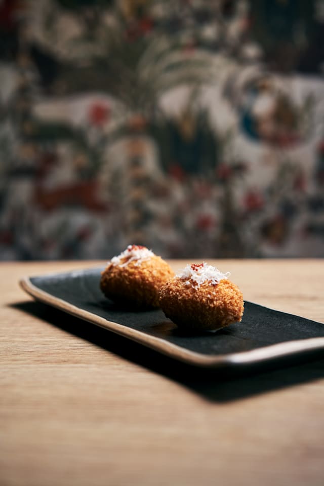 Croqueta de jamón ibérico con leche de oveja y queso idiazabal.