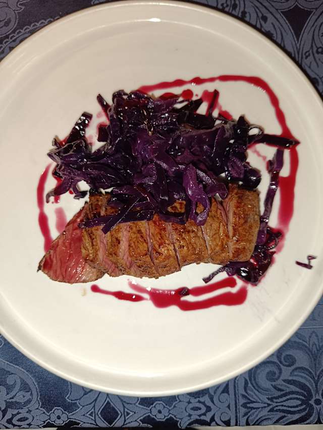 - Picanha di vitello marinata al miele di castagno e arance con cavolo cappuccio brasato al vino