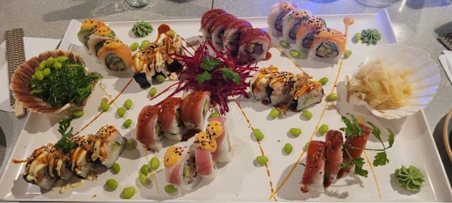 10/10Amazing Sushi, great size and delicious! Have been there with my friend and we enjoyed the friendly staff. The sushi plate was nicely decorated :-)