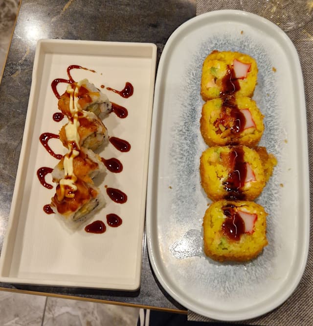 10/10Super high quality fish. Had gluten free soy sauce available which was great. Lots of vegetarian options for our daughter too. Staff very attentive. Fantastic decor too. Top class all round.