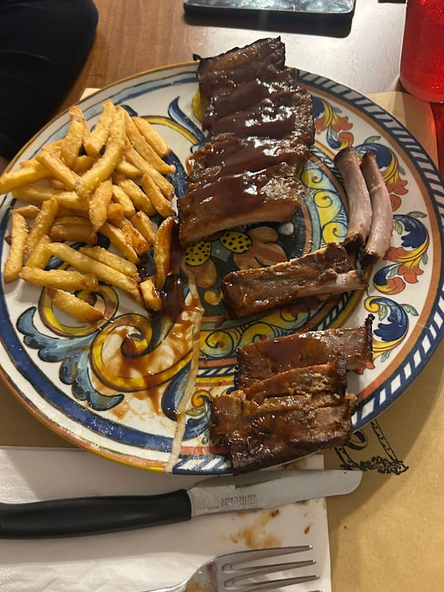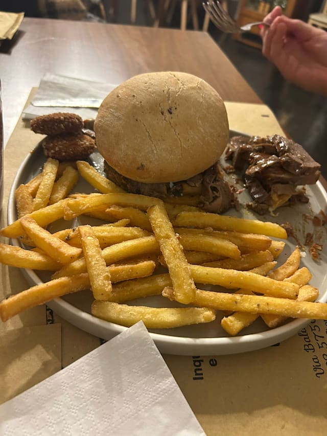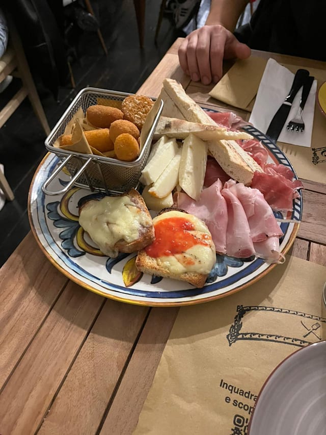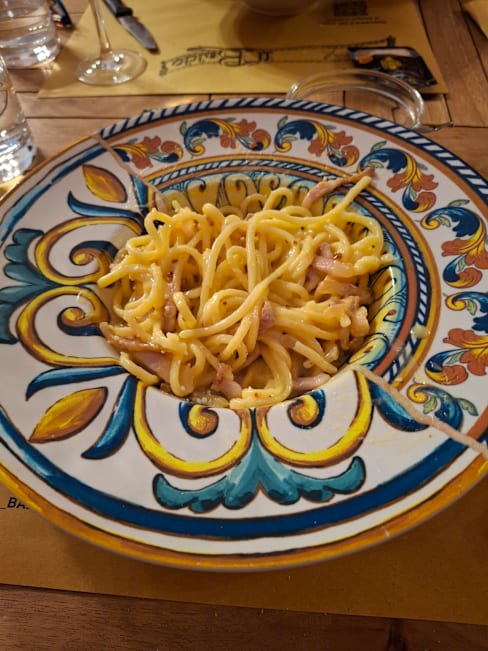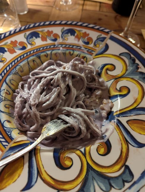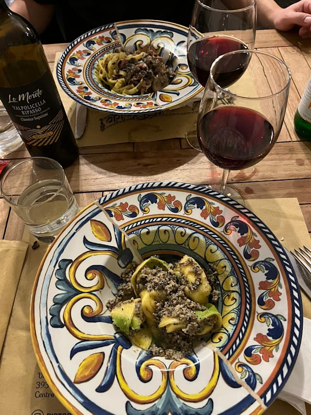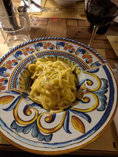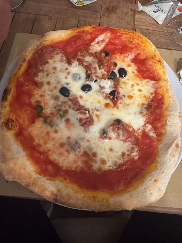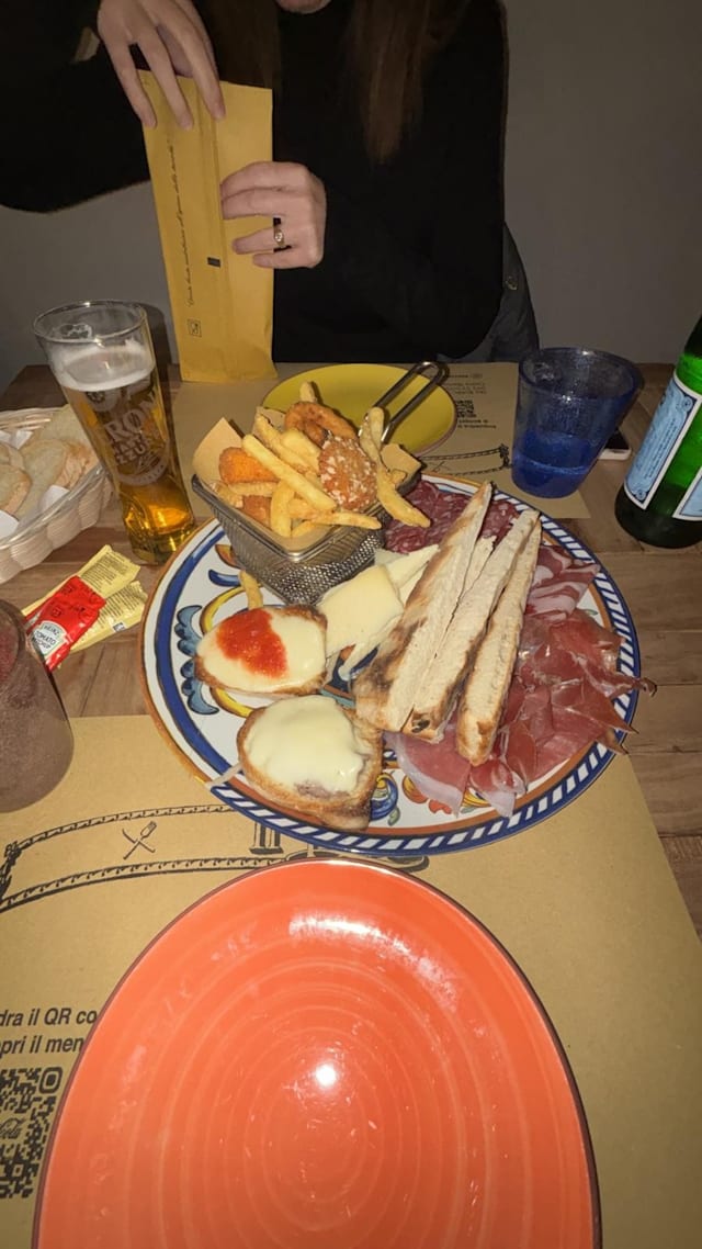 7.5/10The food was 'good' not the kind I would return to but ok. The language barrier for example I wanted RED wine, but they brought WHITE, they fixed it but... We asked for Non sparkling water (in Italian) but they still brought the wrong water (see the image). Then after we were seated, a huge party came in and it got a bit chaotic.