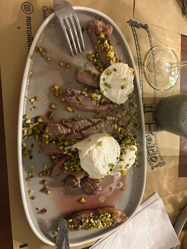 10/10We arrived in Perugia after a long drive and we were hungry for some good food. We found Il Baldo online and we were not disappointed. The restaurant is tucked away on a side street which runs parallel to one of the busiest streets in the city and so it is easy to miss it. The service was very friendly and the waitress spoke excellent English. We had mozzarella sticks, ribs and risotto with asparagus and sausage, all of which were delicious. The prices are very reasonable too. We are very pleased that we found Il Baldo.