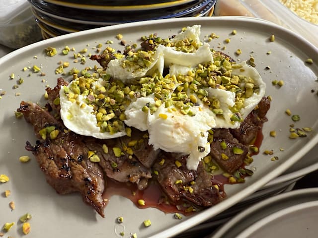 Tagliata di vitello con bufala DOP e granella di pistacchio