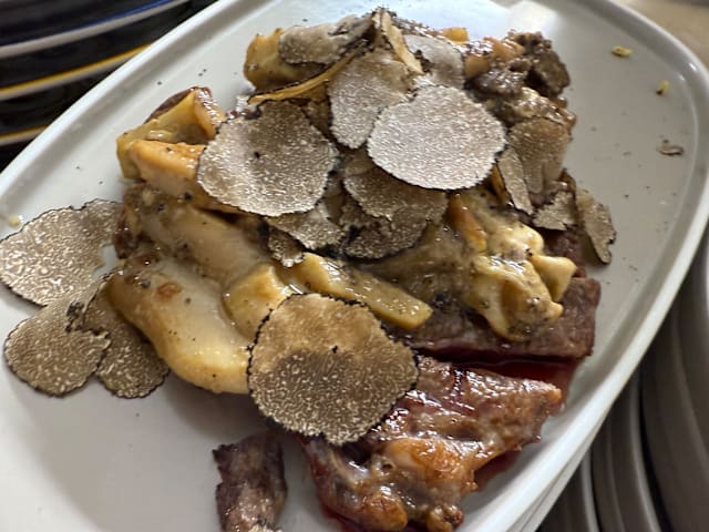 (Pancetta, funghi porcini, salsa tartufata e tartufo)