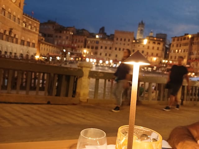 9.5/10Sitting outside looking at the Sienna Piazza del Campo while eating dinner is already great but enjoying a delicious Brunello di Montalcino wine and great food at the same time is even better. I had gluten free pasta that was amazing ( thank you to the restaurant for offering that!) and my friend loved the ham, melon, and cheese appetizer plate they had. Everything was delicious.