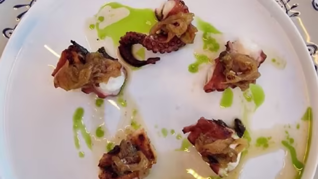 - Polpo alla piastra, cipolla caramellata e riduzione alla cacciatora