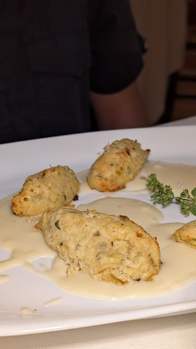 Friendly staff and tasty non-typical dishes (at least for us tourists). Beautiful venue, spacious parking, walking distance from our hotel Villa Cesi.