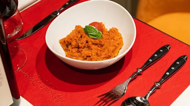 - Ricetta “fusion” toscana, con il sugo all’aglione della valdichiana che incontra il bardiccio, salsiccia al finocchio della valdisieve (passione dello chef )