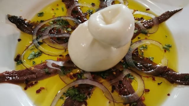 Alici grosse cantabriche coll'aglio rosso, il petrosello e lo stravergine d'umbria