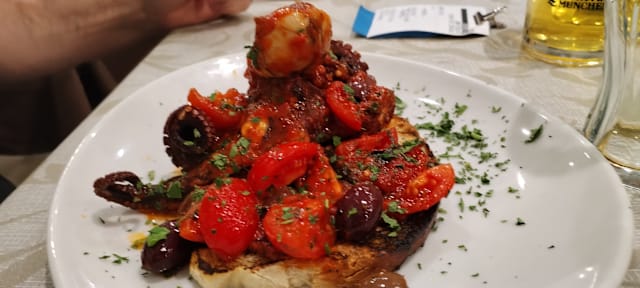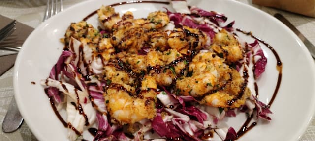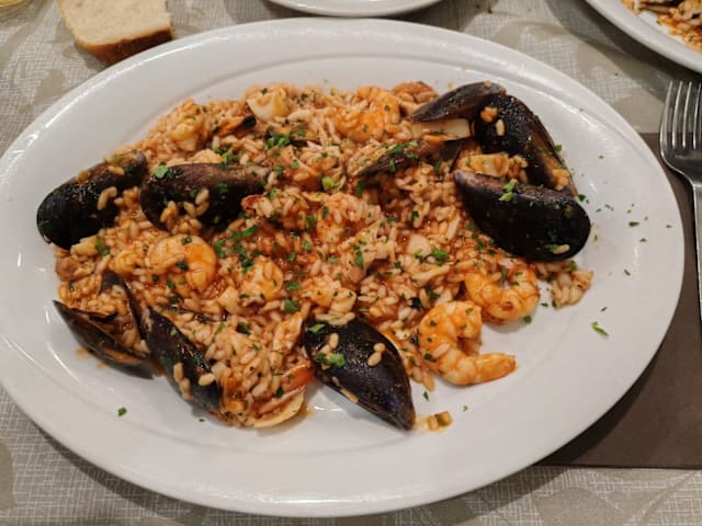 This no frills eatery was not near the city center but worth the drive. We were seated right away. The rest of the service took a while, but the food did not disappoint. We had a pork appetizer with radicchio and a balsamic glaze that was fantastic. My husband got the tuna steak that was seared served with a sauce and chopped pistachios. One of his favorite meals of the trip. I had the risotto frutti di mare which was a delicious dish, a generous serving and full of perfectly cooked seafood. We finished with a nice tiramisu and a lemon sorbet that was very light and refreshing.