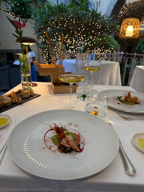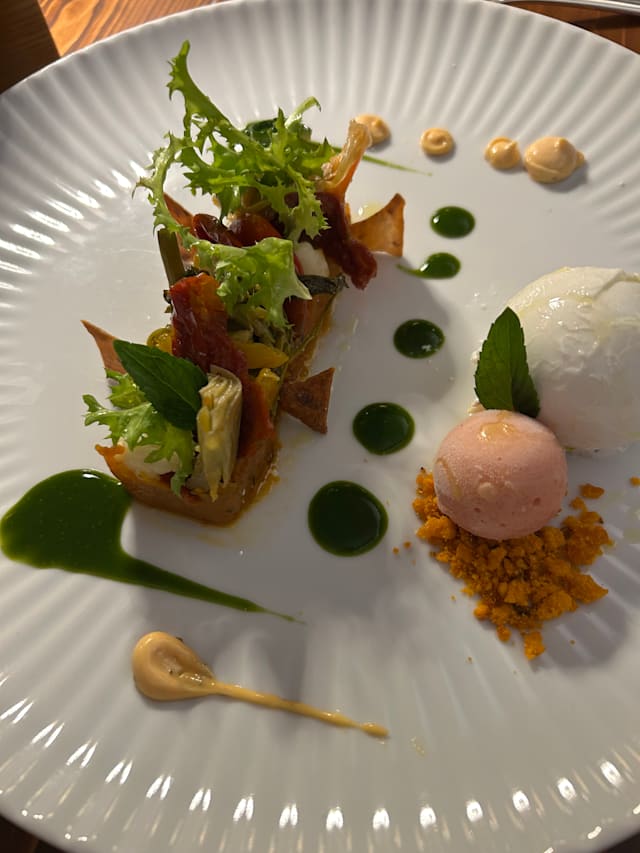6/10We were excited to come but quite disappointed at the experience - it's fine, no problems but it was very expensive for the food and service. The dishes were beautifully presented and we loved the bread tower, but the taste of the food was average only. We were grateful to be allowed to order one seafood and one meat degustation to share, but found the seafood one a bit bland. The service was fine but not friendly, there seemed to be a consistent "too cool" approach, no smiles/ response to waiting at the entry, no warmness though service was fine, nothing helpful or high quality. The dishes were generous in size, and the setting as beautiful outside but a bit strange having a public footpath straight through the middle and getting stared at by tourists while ate. The flavours on some dishes were mysterious, we couldn't taste many of the ingredients and they kept using the same condiments and decorative sauces in the dishes repeatedly. It's nice but very surprised they have a Michelin.