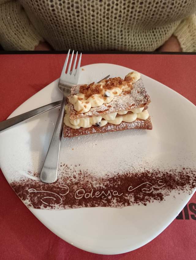 - Mille foglie con crema chantilly e gocce di cioccolato.