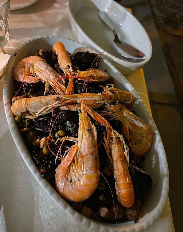Black paella felipe italiana (riso venere, pesce, carne, verdure e spezie) costo a persona