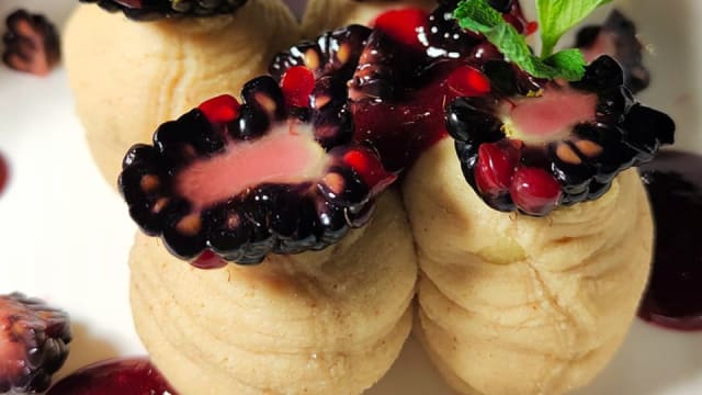 - Gamberi in pasta kataifi e salsa teriyaki ai mirtilli