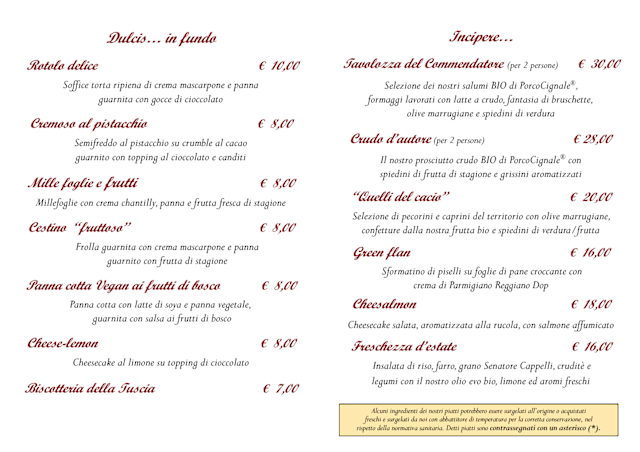 9/10A dog friendly place. It seems in the middle of nowhere but it is actually only some 10 minutes from Centro Montefiascone. The setting is very pretty. The menu is full of interestingly different dishes. Often featuring their Porcocingale meat. Food was full of flavor and well prepared. We will be back.