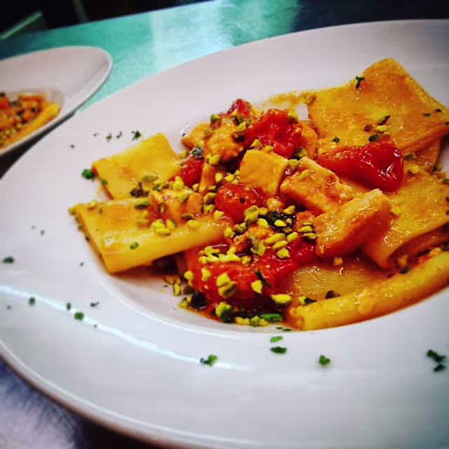 - Mozzarella, stracciatella, mortadella, granella di pistacchio, basilico