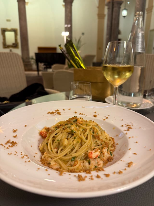 8.5/10quiet nice place far from the chiosco of the centre, very elegant, small porzione though and I had to ask for the discount to be applied