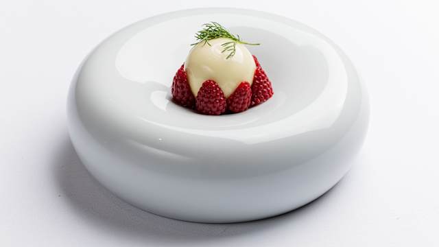 - Sashimi di ricciola, crema di mandorla, lampone e quinoa soffiata