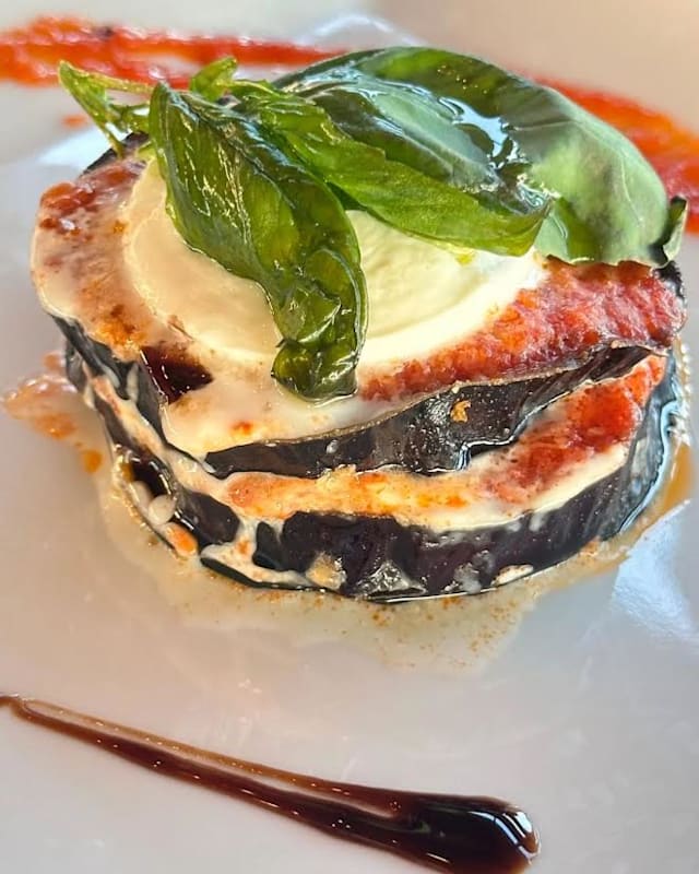 Pomodoro, fior di latte, melanzane, ricotta salata e basilico