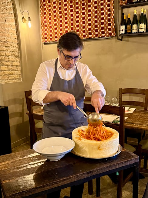 10/10great restaurant with great food and service! the food was spectacular, we had pasta straight out of the block of cheese which is something that my wife dreamed about, and the roast lamb, both were very nice and presented beautifully. the staff were really nice and welcoming, knowing that we would like to take pictures and were happy to accommodate. we also had a very nice desert from real mascarpone cream with wild berries. highly recommended for a local restaurant in the heart of Rome.