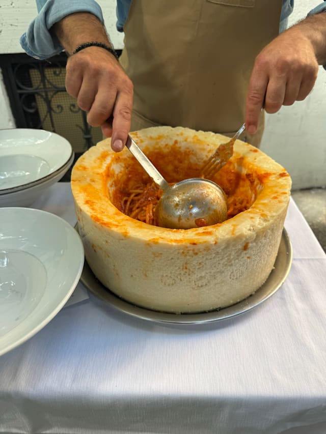 8/10Came for the pasta wheel. The food was delicious and our waiter was great. The only disappointment was the pasta wheel. I had expected them to do it in front of us. However, it was just brought out and presented, then served.