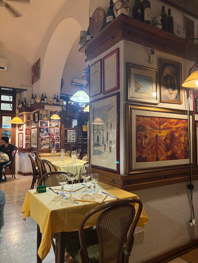 10/10I can’t recommend this place enough. The ambience created by the owner and all the pics and art on the walls from his years at Il Colibri nearly make this place worth a visit on it’s own. It’s so colourful and warm, we went for dinner twice within four days. The pasta with truffles was excellent, the red house wine was a gorgeous bottle from Montepulciano, the tiramisu was amazing, and we were even convinced to try the grappa and limoncello. A really delightful evening! Their pizzas seemed popular, and they have some house specialities on a separate menu too that changes frequently.