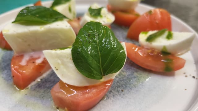 Tartare di Prussia, pomodorini confit, stracciatella di bufala, olive, capperi e Cialda alla paprika dolce