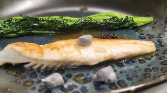 Capesante arrosto, sedano rapa, caviale di aringa, salsa teriyaki